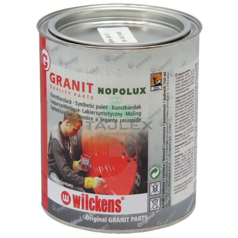 Pozostałe informacje Odcień farby: Renault szary Opakowanie: puszka 1 l pasuje do: Renault Opis: Nopolux – szybko wysychający lakier na bazie żywicy syntetycznej najwyższej jakości. Doskonały do pojazdów, ciągników i maszyn, dostępny w standardowych odcieniach stosowanych przez najpopularniejszych producentów. Nopolux jest nie tylko odporny na uderzenia i zadrapania, lecz również na warunki pogodowe i olej. Gwarantuje doskonałe właściwości przy bardzo prostej obróbce. Oryginalne odcienie do ciągników i kombajnów różnych producentów. Dane techniczne: • objętość stała ok. 50% (w zależności od odcienia) • standardowa grubość warstwy na sucho 40 µm, na mokro 80 µm • temperatura zapłonu: +27°C • wysoki połysk Zastosowanie: 1. Powierzchnia powłoki musi być wolna od kurzu, rdzy, zgorzeliny walcowniczej, oleju, soli, wilgoci i innych zanieczyszczeń 2. Podczas obróbki temperatura obiektu musi być co najmniej o 3°C wyższa od temperatury punktu rosy 3. Farba antykorozyjna GRANIT nadaje się jako podkład 4. Łatwa obróbka przy użyciu wszystkich popularnych metod aplikacji - natryskiwanie konwencjonalne, natryskiwanie airless i airmix, malowanie i wałkowanie 5 Wydajność ok. 12 m²/l = 12 m²/kg przy 40 μm (w zależności od podłoża i warunków aplikacji) 6. Zapewnić odpowiednią wentylację 7. Nie wdychać rozpylonej mgły 8 Unikać kontaktu ze skórą Informacje dodatkowe: Odpowiedni rozcieńczalnik: 270898 rozcieńczalnik na bazie żywicy syntetycznej 1 l 270350 rozcieńczalnik na bazie żywicy syntetycznej 3 l 270351 rozcieńczalnik na bazie żywicy syntetycznej 6 l 270352 rozcieńczalnik na bazie żywicy syntetycznej 12 l Zastosowanie: Szybkoschnący lakier nawierzchniowy 1K do maszyn rolniczych i budowlanych. Producent: Wilhelm Fricke SE, Zum Kreuzkamp 7, 27404 Heeslingen, Deutschland, www.granit-parts.com, info@granit-parts.com Waga: 996 g