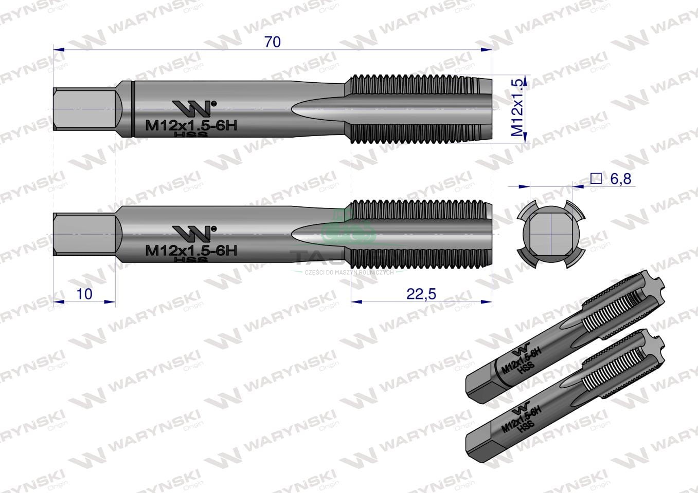 Gwintowniki komplet 2 szt do gwintu metrycznego drobnozwojowego DIN2181 M12X1.5 Waryński WMG412