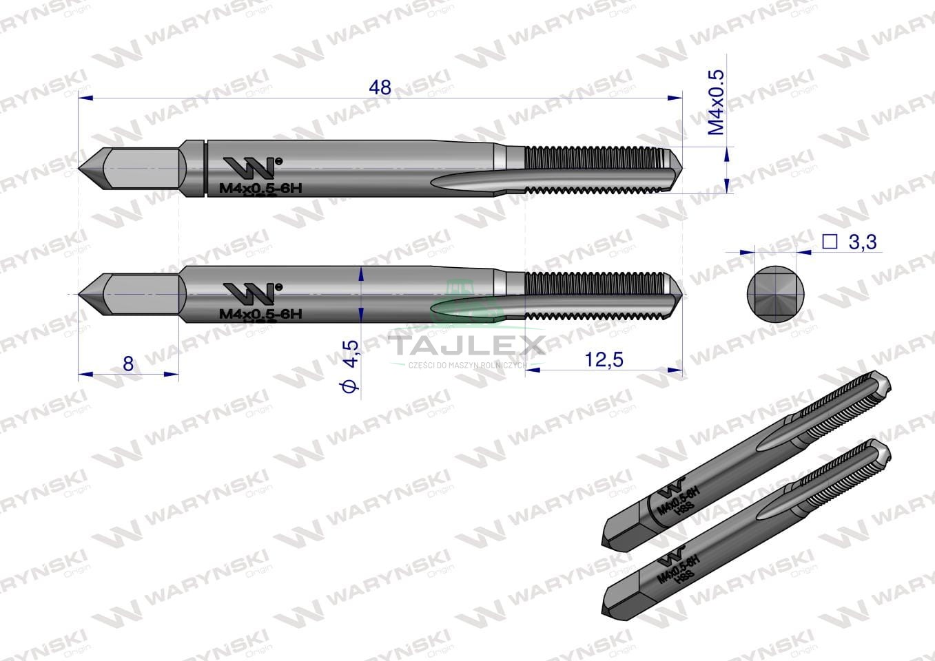 Gwintowniki komplet 2 szt do gwintu metrycznego drobnozwojowego DIN2181 M4X0.5 Waryński WMG404