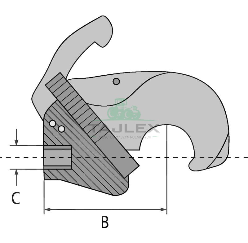 Hak Z zatrzaskiem ARAPC2A Specyfikacja Techniczna: B (mm): 109 Do kuli o Ø zew. (mm): 50 Ø C (mm): 20 x 1,5