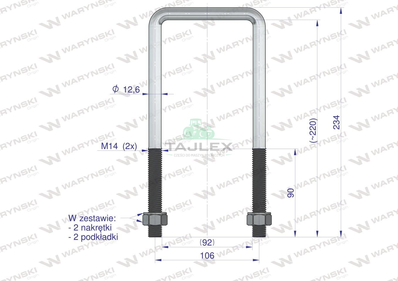 Jarzmo, Cybant, długie M14 92x220, Waryński
