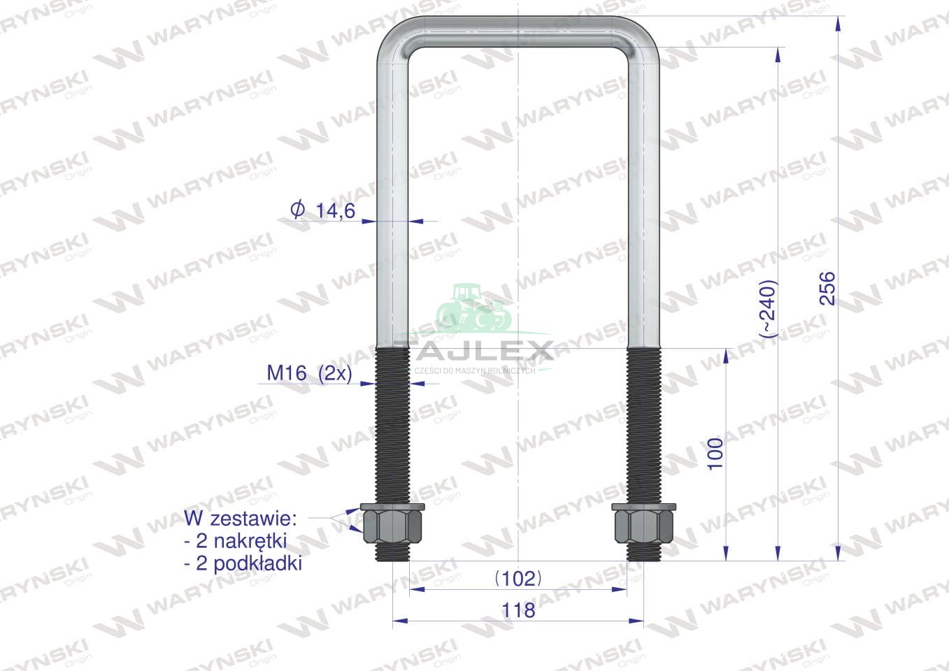 Jarzma (cybanty) uniwersalne Waryński dostępne są w różnych rozmiarach. Uniwersalne jarzma (cybanty) marki Waryński to solidne elementy mocujące, szeroko wykorzystywane w maszynach rolniczych oraz przemyśle. Wykonane z trwałej, ocynkowanej stali, zapewniają wysoką odporność na korozję oraz długą żywotność nawet w trudnych warunkach pracy. Dostępność wielu rozmiarów umożliwia precyzyjne dopasowanie do różnych średnic rur, prętów oraz profili stalowych. Jarzma charakteryzują się dużą siłą docisku i niezawodnością mocowania. Zastosowanie w maszynach rolniczych: Stabilizacja elementów konstrukcyjnych przyczep, rozsiewaczy, bron i pługów Montaż zbiorników, osłon i prowadnic Utrzymywanie elementów ramy i zawieszenia Mocowanie rur oraz przewodów hydraulicznych Cechy produktu: Wysoka odporność na obciążenia mechaniczne Odporność na warunki atmosferyczne Łatwy montaż i demontaż Dostępne różne średnice i długości gwintów Idealne do zastosowań serwisowych i produkcyjnych w rolnictwie oraz przemyśle ciężkim. Wysokość [mm] 240 Kształt [] Kwadrat Szerokość wewnętrzna [mm] 102 Średnica gwintu [mm] M16 Dedykowane do profila [mm] 100x100