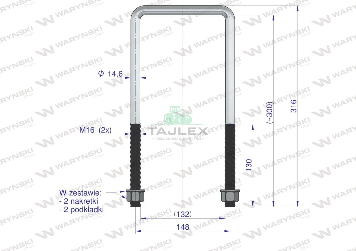 Jarzma (cybanty) uniwersalne Waryński dostępne są w różnych rozmiarach. Uniwersalne jarzma (cybanty) marki Waryński to solidne elementy mocujące, szeroko wykorzystywane w maszynach rolniczych oraz przemyśle. Wykonane z trwałej, ocynkowanej stali, zapewniają wysoką odporność na korozję oraz długą żywotność nawet w trudnych warunkach pracy. Dostępność wielu rozmiarów umożliwia precyzyjne dopasowanie do różnych średnic rur, prętów oraz profili stalowych. Jarzma charakteryzują się dużą siłą docisku i niezawodnością mocowania. Zastosowanie w maszynach rolniczych: Stabilizacja elementów konstrukcyjnych przyczep, rozsiewaczy, bron i pługów Montaż zbiorników, osłon i prowadnic Utrzymywanie elementów ramy i zawieszenia Mocowanie rur oraz przewodów hydraulicznych Cechy produktu: Wysoka odporność na obciążenia mechaniczne Odporność na warunki atmosferyczne Łatwy montaż i demontaż Dostępne różne średnice i długości gwintów Idealne do zastosowań serwisowych i produkcyjnych w rolnictwie oraz przemyśle ciężkim. Wysokość [mm] 300 Kształt [] Kwadrat Szerokość wewnętrzna [mm] 132 Średnica gwintu [mm] M16 Dedykowane do profila [mm] 130x130