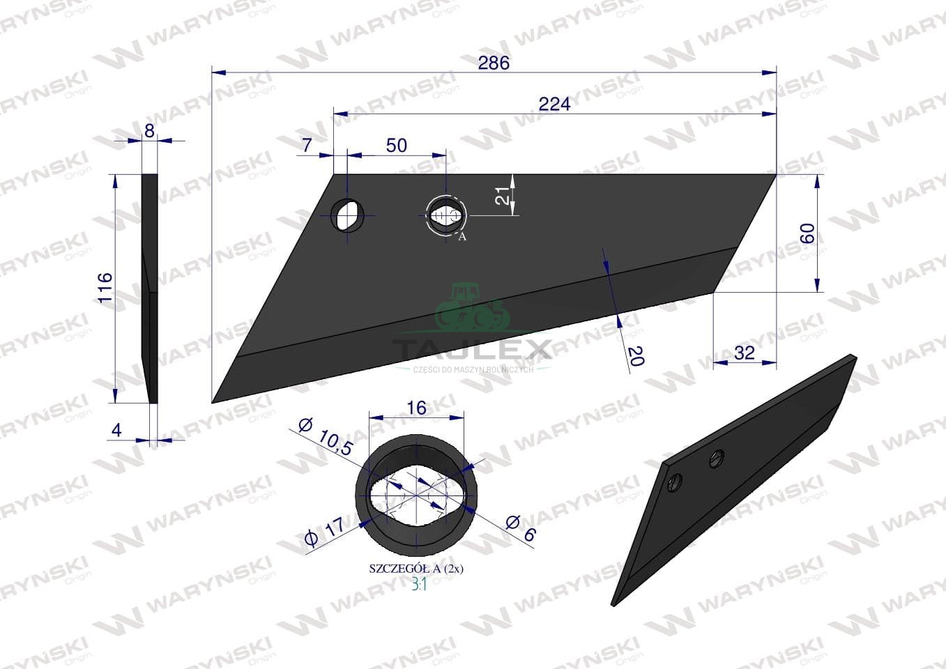 Lemiesz agregatu podorywkowego lewy 260mm/2-otwory 925371 Gruber typ Brodnica RAU Uniwersalne WARYŃSKI