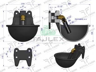 Poidło miskowe żeliwne z zaworem rurowym czarne 1.8l royal farm Poidło bydła miskowe wykonane z żeliwa szrego Powtarzalność zapewnia kontrola jakości wbudowana w proces wytwarzania. Ich właściwości pozwalają na optymalny przepływ transportowanej masy. Malowane proszkowo zapewnia zwiększoną odporność na korozję i ścieranie