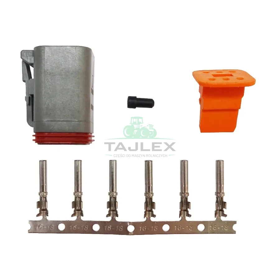 Wtyka deutsch A.07.131 Wtyka Deutsch Dane techniczne: ✅ Złącze: DT06-6S Cechy produktu: ☑️ Wysokiej jakości połączenie hermetyczne ☑️ Odporna na warunki atmosferyczne ☑️ Konstrukcja złącza wykorzystuje zatrzaskowy system, który zapewnia idealne elektryczne i mechaniczne połączenie ☑️ Polski produkt ☑️ Producent Wesem Wieliczka Zastosowanie: ✅ Maszyny drogowe, koparko-ładowarki, terenowe wózki widłowe, kombajny rolnicze, pługi odśnieżne, ładowarki teleskopowe Numer katalogowy: ➡️ A.07.131 ➡️ A.0713